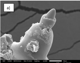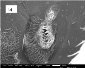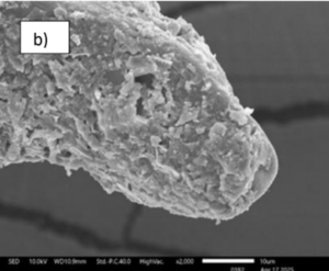 Fig. 1. Scansioni al microscopio elettronico a scansione (SEM) di insetti adulti. Spiracolo anteriore di a) adulto non esposto e b) e di adulti esposti all’applicazione del sistema Insectiblock® | |
